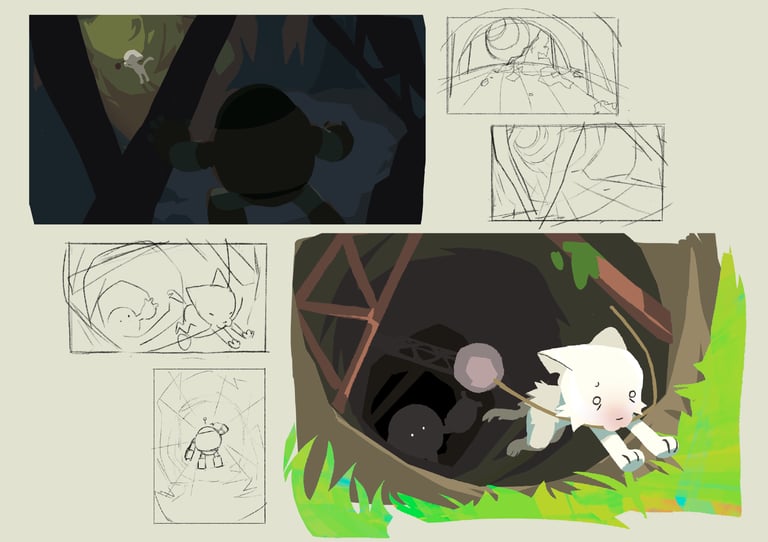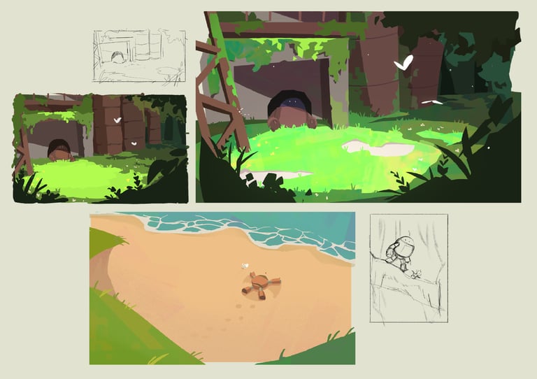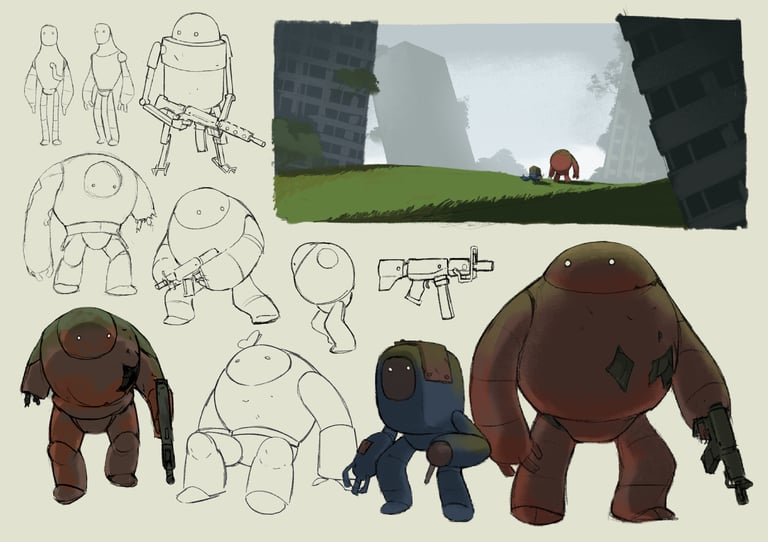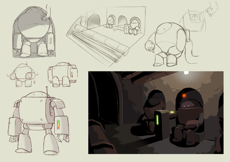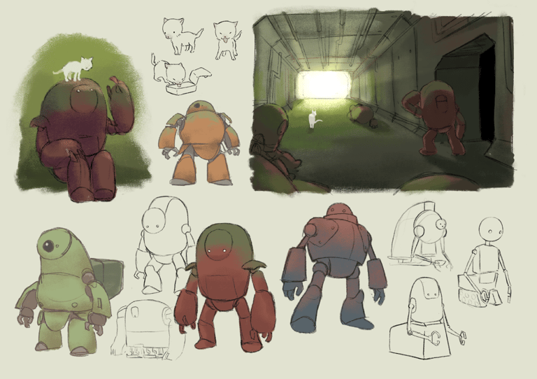 Created and pitched concept of a robot exploring an overgrown, post-apocalyptic world that would go on to be developed into our third year film project, Bot and Cat